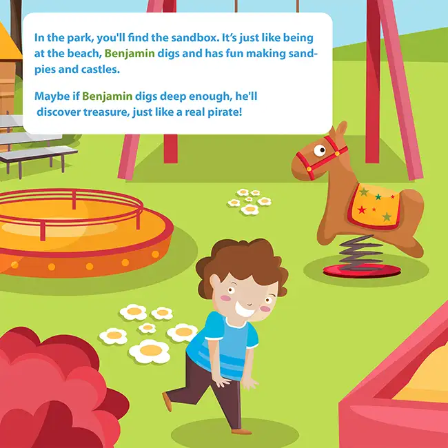 Because in this book, your child is not just the child you take to the park. He is the hero of every page, the one whose face you recognise right on the cover and whose name is spoken on every line.