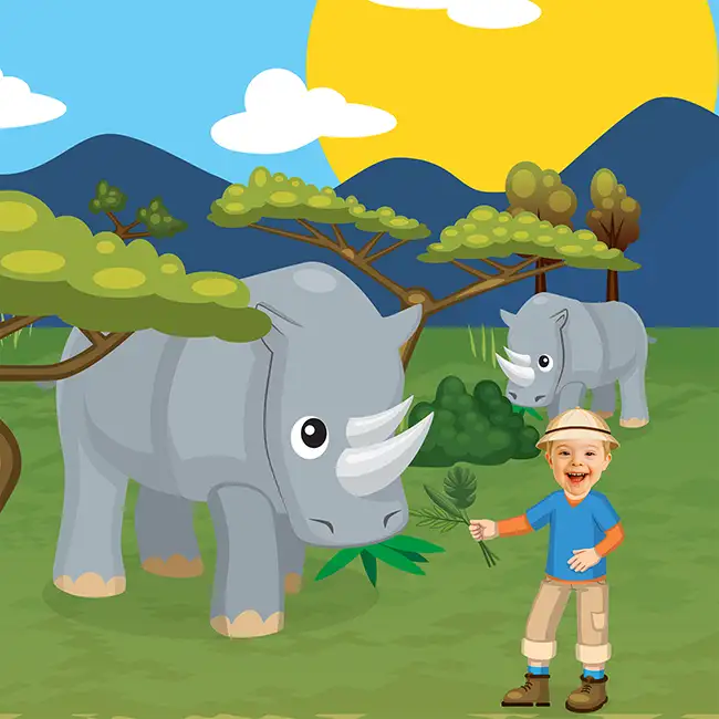 Imagine his face when he discovers that the hero of the story is him. His photo in the middle of the savannah, his name on the animals’ lips, and an adventure that belongs only to him. Not to a generic character. To him.