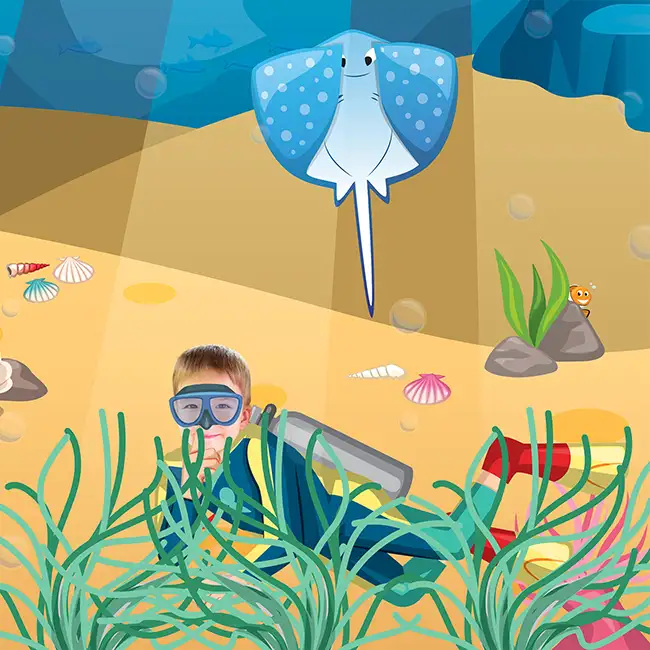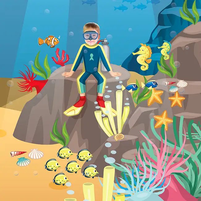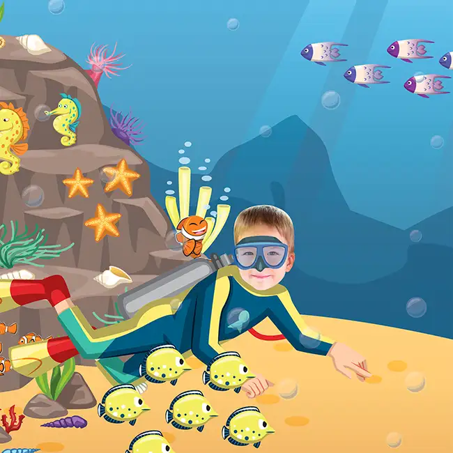 A clownfish as a guide. Dolphins, beluga whales, rays. And your child at the heart of the adventure, as a diver or a mermaid.