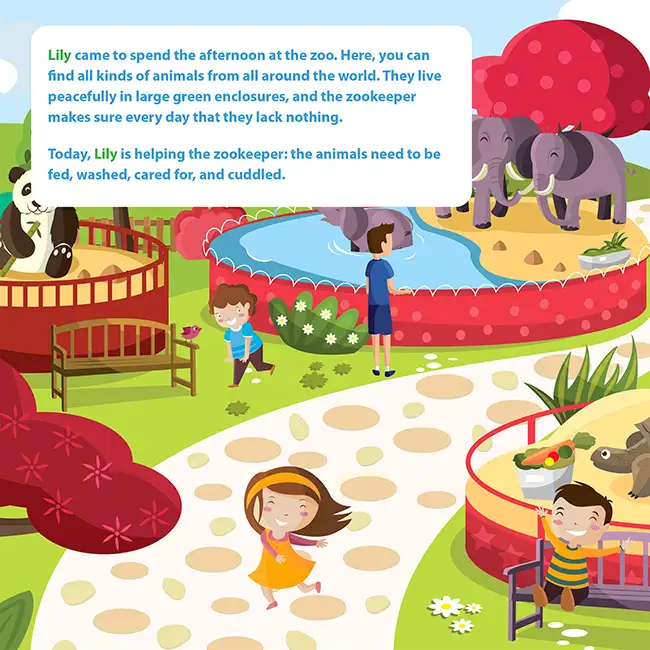 As the pages turn, your child teams up with the zookeeper for real hands-on missions: