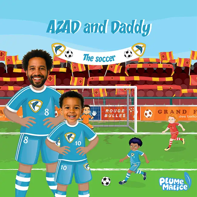 Upload your child’s photo and the photo of their favourite teammate, add their names and a personal dedication, and there they are together on the pitch as real football players. The book is made in France, with thick glossy pages that stand up to repeated Sunday night reading. Because when you are both heroes of the story, you never get tired of it.