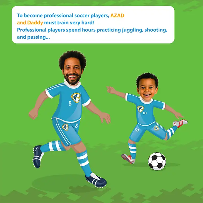 For a 4th, 5th, 6th, or 7th birthday, for Christmas, or to celebrate the end of the season, this book delights football-loving children and all the adults, parents, grandparents, godparents, who want to give them something unique. Not a shirt. Not a ball. A book where your child is the player, and their favourite person is their teammate.