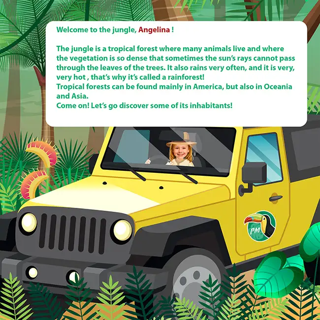 Jeep ready. And the tropical rainforest waiting to be explored, from the smallest frog to the anaconda. Your child is leading the expedition.