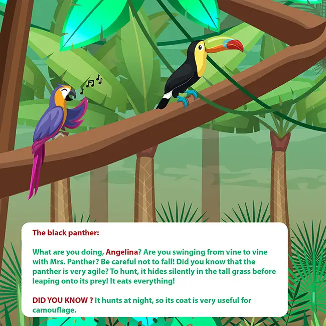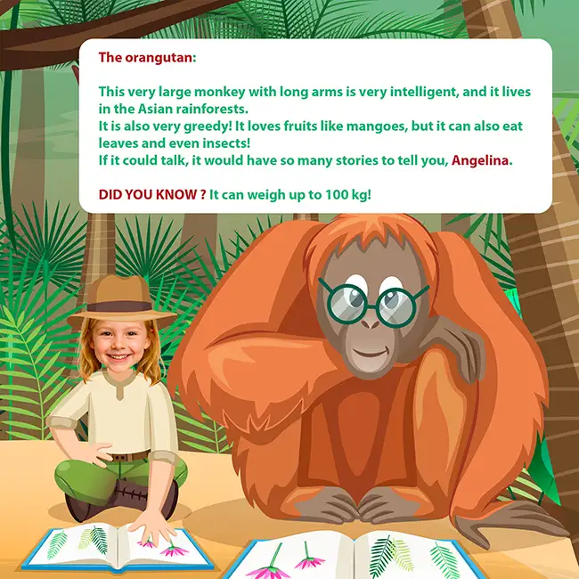 In The Jungle, your child sets out to discover the rainforest and all its inhabitants. He gets to know them, takes care of them, and ventures deep into the jungle, brave with every new encounter. His name and photo appear on every page of the adventure.