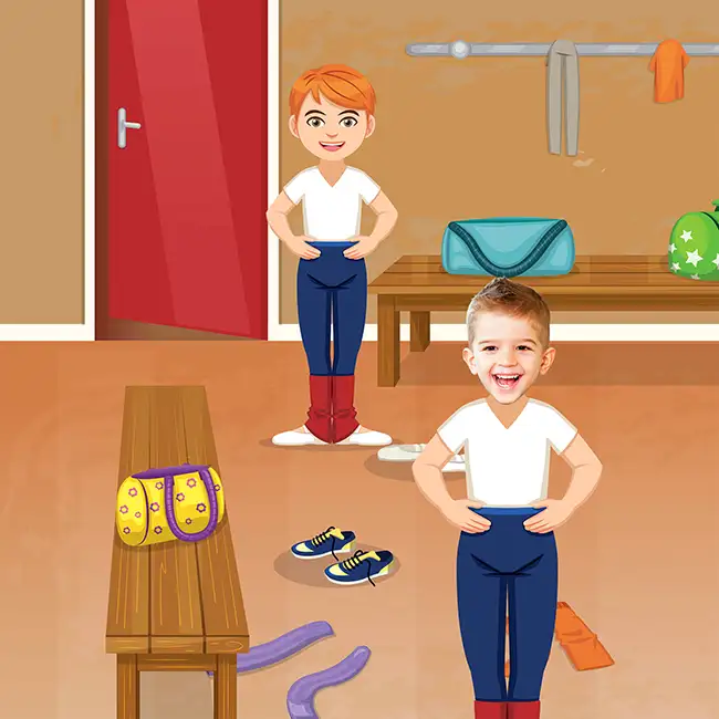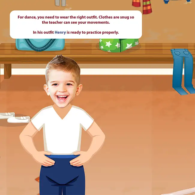 In Star Dancer, your child steps into a real classical dance studio. He discovers positions, technical vocabulary, beautiful costumes, and the stunning theater set. His photo is there on every page, his name in the teacher’s words. Not a generic character who sort of looks like him. Him, truly him, under the stage lights.