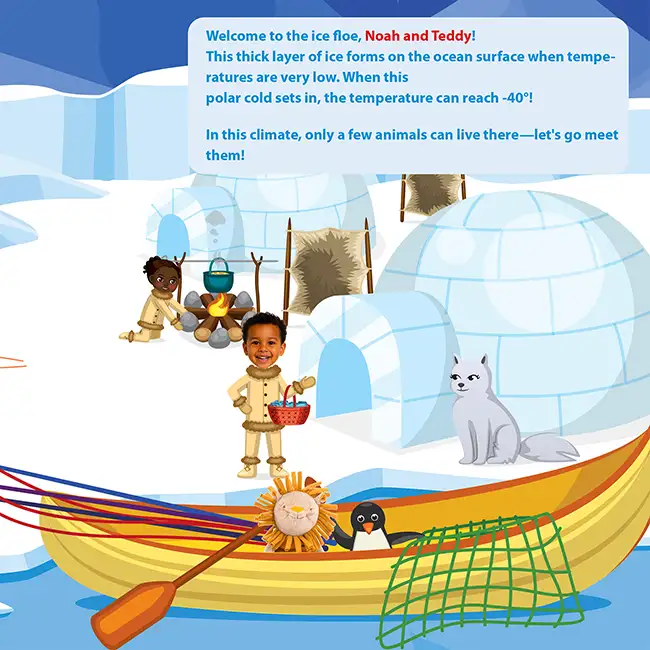 Your child and their lovey meet the animals of the ice, from the smallest to the biggest. Polar bears, walruses, orcas, blue whales... Every encounter teaches something, every page is a discovery. Your child learns while having fun, with their faithful companion by their side.