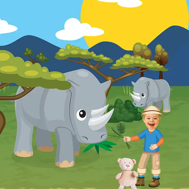 Here, you get two personalizations for the price of one. Your child’s photo is woven into the story, and their lovey’s photo is too. They explore the savanna together, side by side in the illustrations, partners at every page turn. Because a lovey is more than a toy. It belongs in the book too.