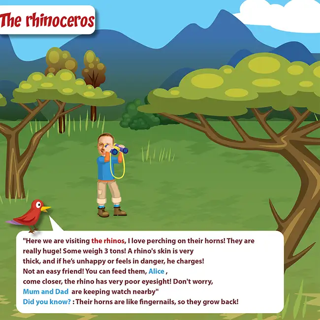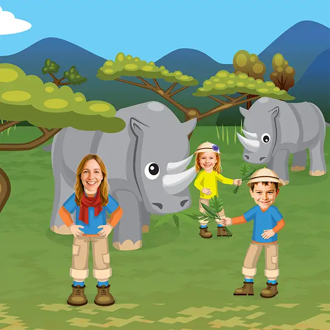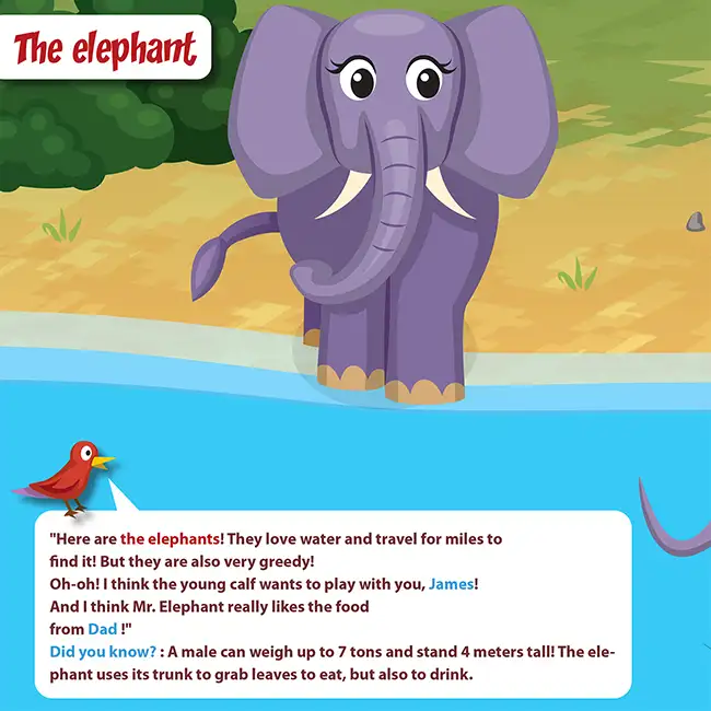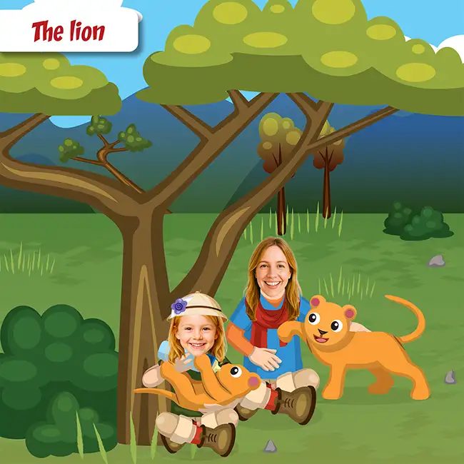 In Savanna Family Edition, your child sets out to discover Africa guided by Zouzou, a curious little bird. Together, they explore all the animals that live in the savanna. And on every page, the two adults they choose are there too, in photo, with their names in the story.