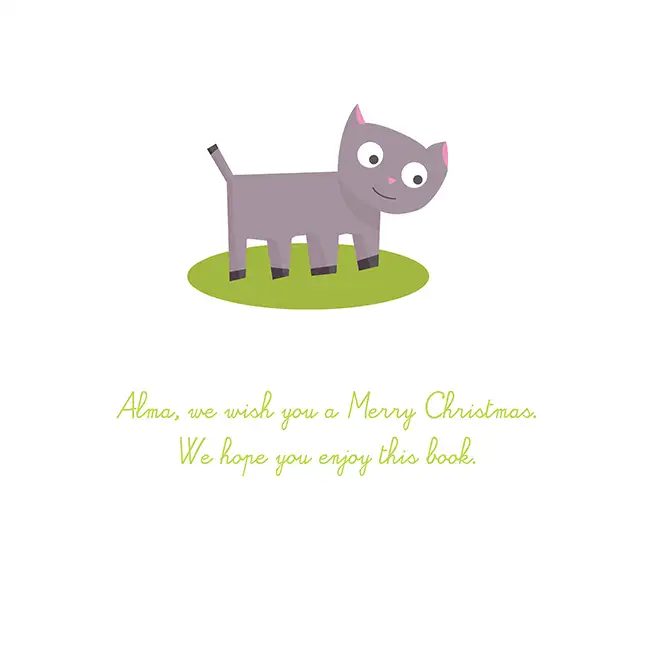The dedication is a short personal message printed on the first inside page of the book. It lets you add a special note to make your personalized gift even more meaningful.